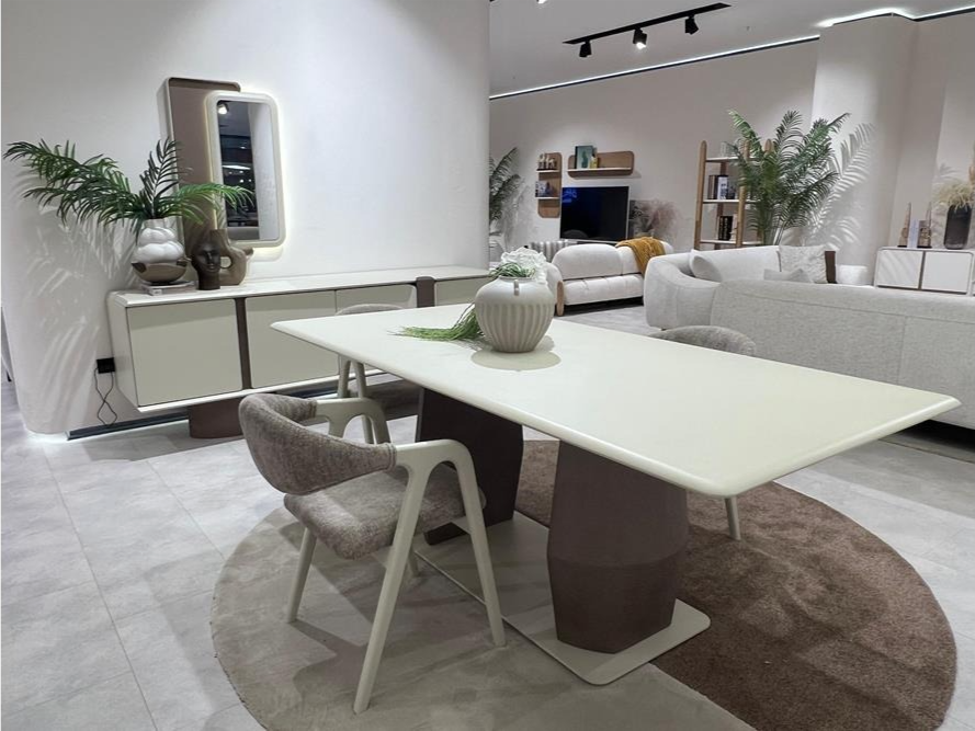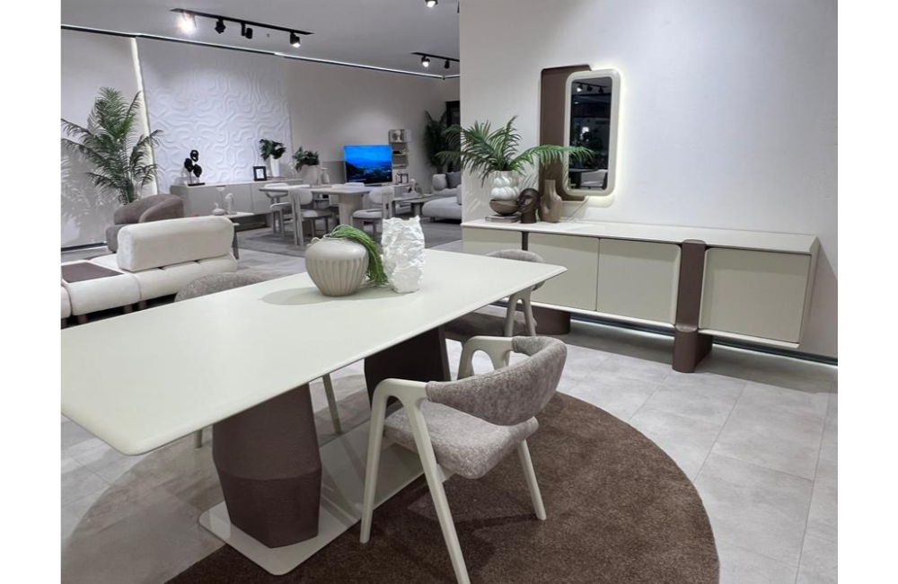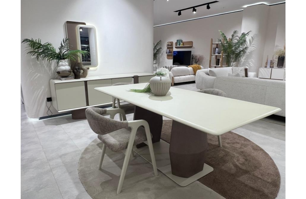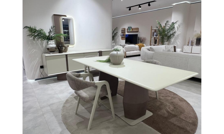 1 ad. konsol (aynalı), 1 ad. sabit masa ve 6 ad. sandalyeden oluşmaktadır.